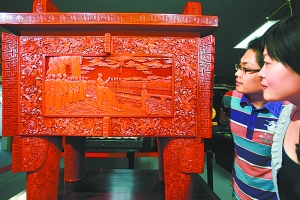由雕漆工藝完成的鼎盛中華造型以司母戊鼎為原型,重達(dá)300多斤。制作時(shí)先經(jīng)過半年時(shí)間刷上240多層漆,再在1.2厘米厚度的漆面上進(jìn)行手工雕刻。其正面以油畫“開國(guó)大典”為內(nèi)容,背面題為“中華賦”及長(zhǎng)城圖案。象牙作品以長(zhǎng)兩米、重320斤的百年“老”象牙材料為基,以56個(gè)民族載歌載舞為主題,背景是30處世界文化遺產(chǎn)。象牙、雕漆、玉器和景泰藍(lán)被譽(yù)為工藝美術(shù)界的“四大名旦”,另外兩項(xiàng)巨作景泰藍(lán)“太平有象”和玉雕“九龍?jiān)》稹币矊㈥懤m(xù)亮相。 (記者耿諾)