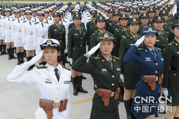 今年的閱兵盛典上,三軍女兵方隊陣容不僅是此次閱兵徒步方隊最大的一個,也是世界近代閱兵史上陣容最大的徒步方隊。在新中國閱兵史上,三軍女兵方隊是除護(hù)旗方隊外,第一次以“陸?铡比娦问浇M成一個方隊,領(lǐng)隊三人。