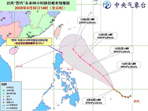 中新網(wǎng)9月30日電 據(jù)中國氣象局網(wǎng)站消息,今年第17號(hào)強(qiáng)熱帶風(fēng)暴“芭瑪”于30日下午在菲律賓以東洋面加強(qiáng)為臺(tái)風(fēng),30日17時(shí)其中心位于菲律賓馬尼拉東南方大約1560公里的洋面上,就是北緯10.3度、東經(jīng)134.7度,中心附近最大風(fēng)力有12級(35米/秒),中心最低氣壓為970百帕。