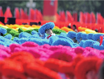 路建康說,他要感謝組成七色光方隊的1500名四、五年級的小學(xué)生們。這些孩子站在背景最前沿,離閱兵隊伍最近,他們組成了七彩花環(huán),寓意團圓。游行結(jié)束,七色光方隊要涌向金水橋。