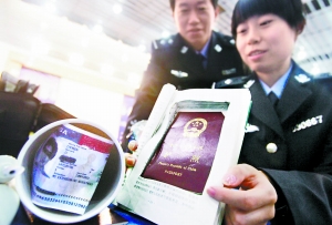 針對(duì)偷渡犯罪的猖獗,邊檢總站加大培訓(xùn)民警識(shí)別偷渡人員的力度,同時(shí)采取高科技檢測(cè)手段識(shí)別偽假證件。記者在現(xiàn)場(chǎng)看到,目前民警使用的最新式檢查護(hù)照簽證儀器,最小只有鼠標(biāo)大小,可隨身攜帶,還有快速“刷”護(hù)照的證件閱讀機(jī),民警把護(hù)照在機(jī)器上一“刷”,讀取信息同時(shí)就能識(shí)別護(hù)照上的防偽標(biāo)識(shí)。