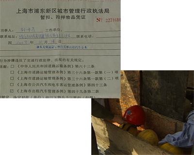張軍說,在這輛面包車上,他收到了一張以涉嫌無證運(yùn)營擅自從事出租汽車經(jīng)營為理由的《車輛暫扣通知單》,按照相關(guān)條例被處以罰款一萬元。處罰他的上海閔行區(qū)交通行政執(zhí)法大隊(duì)聲稱,他們掌握有錄音證據(jù),證明張軍和那名男子談過車費(fèi)的問題,而這正是他們處罰張軍的依據(jù)。但張軍告訴記者,當(dāng)時(shí)那名男子上車后曾多次表示要給他錢,但都被他回絕。