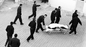 “李洪斌身體特別好,反抗得很厲害”。當時李用鐮刀挾持著女人質(zhì),幾個警察圍住了李洪斌,用警棍和腿踢暈了李洪斌,解救了人質(zhì)。高博隨后沖出,將一名民警刺傷后,向東北方向跑,幾個警察跟隨其后,并開槍將其擊斃。