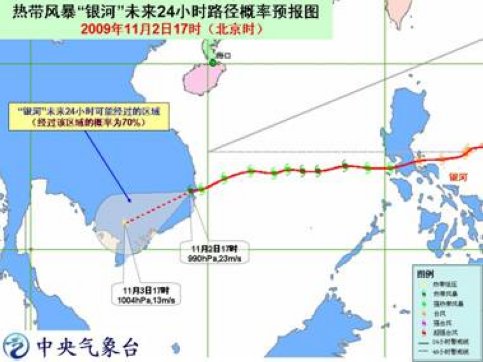 預計,“銀河”將以每小時20-25公里的速度向西偏南方向移動,強度繼續(xù)減弱。