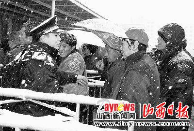 11月10日,一場暴雪給出行的人們帶來了不便。太原交警支隊(duì)迅速啟動(dòng)冰、雪、霧惡劣天氣應(yīng)急預(yù)案,全警動(dòng)員,全員上路,保障人們的出行安全。在大南門崗,太原市公安局副局長、交警支隊(duì)支隊(duì)長尹喜平在大雪中疏導(dǎo)著,并不時(shí)地喊話,提醒大家注意安全。杏花嶺交警大隊(duì)對(duì)轄區(qū)太原市東客站和太原市客運(yùn)汽車公司駐站管理。古交交警大隊(duì)在三岔口和神堂巖執(zhí)勤點(diǎn)及早安排警力,實(shí)施交通管制……(記者曹秀娟)