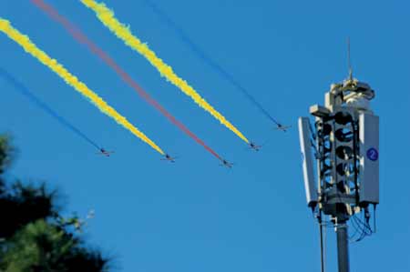 10月1日上午,國(guó)慶60周年盛大閱兵式在首都天安門廣場(chǎng)隆重舉行。11時(shí)20分,由我國(guó)首批殲擊機(jī)女飛行員組成的空中第十二梯隊(duì),駕馭著15架教—8戰(zhàn)機(jī),分3個(gè)楔形編隊(duì)飛臨天安門上空,在人們的歡呼聲中呼嘯而過,在空中留下道道絢麗“彩虹”,上演了一場(chǎng)精彩的閱兵壓軸大戲,向世人宣告我國(guó)成為世界上擁有殲擊機(jī)女飛行員的國(guó)家之一。閱兵后不久,中央軍委委員、空軍司令員許其亮,空軍政治委員鄧昌友簽發(fā)通令,為這個(gè)英雄群體記集體一等功。