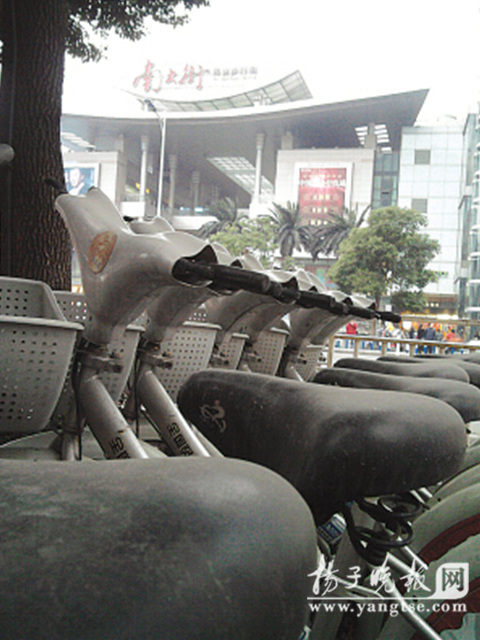 “免費(fèi)自行車這兩天又少了個車座墊,這已經(jīng)是被盜的第四個座墊了!奔易〕V萸逄队裉m苑的倪小姐告訴記者,那些免費(fèi)自行車放在那很長時間都沒動過了。因此那些車都那么臟了,車座墊、把手上全是灰。她認(rèn)為,“既然不租了,就該將車子移走!放在那多難看!彼說,像她這里是老小區(qū),本來就不大。看看那些沒用的自行車,又占了那么大塊地,實(shí)在可惜。