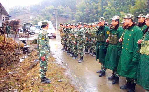 益陽(yáng)至安化有130多公里,道路交通不便,天氣寒冷。在克服諸多不便之后,部隊(duì)于17時(shí)30分開(kāi)進(jìn)清塘鎮(zhèn)梧桐村。另一路由安化縣武警中隊(duì)派出的隊(duì)伍也趕到了現(xiàn)場(chǎng)。