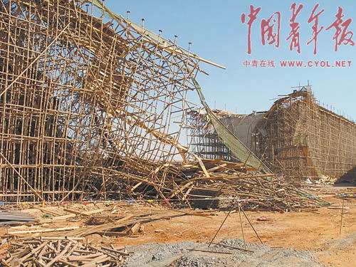 事故發(fā)生的前幾分鐘,李勇仍在腳手架上作業(yè),他剛下來不久,一聲像“翻斗車倒鋼管”的刺耳巨響就從背后襲來,他轉(zhuǎn)身一看,正在進行混凝土澆筑的8米多高的橋面已經(jīng)砸到了地面,橋體四周的腳手架也倒了下來,隨之傳來的就是凄厲的哭喊聲。
