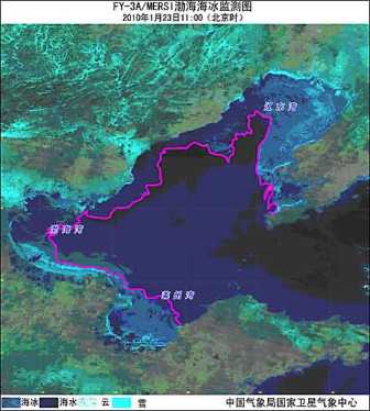 與2000年以來同期氣象衛(wèi)星監(jiān)測(cè)渤海海冰信息比較,今年1月23日渤海海冰范圍屬2000年以來的最大值,包括遼東灣、渤海灣、萊州灣海冰均為同期最大值。