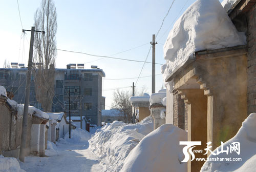 當記者來到城區(qū)背街小巷——杜別克街道倉房巷時看到,兩旁的積雪已與過往行人一樣高。間距不過10米的巷道,一半已讓積雪擋住了去路。