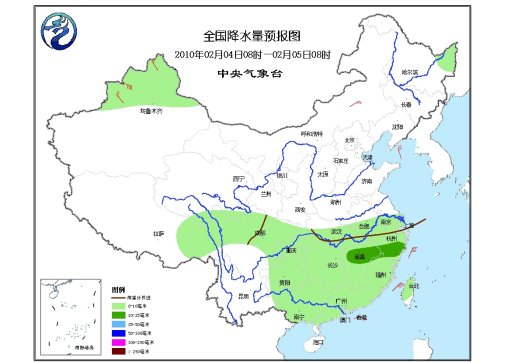 4日08時至5日08時,新疆北部、西藏東部、青海東南部、川西高原北部、黑龍江東北部、江淮南部、江漢大部、江南東北部等地有小雪(雨)或雨夾雪;西南地區(qū)東部、江南大部、華南大部有小到中雨或陣雨。內(nèi)蒙古東部、東北等地有4~5級偏北風(fēng)。東海南部、臺灣海峽有6~7級東北風(fēng)。