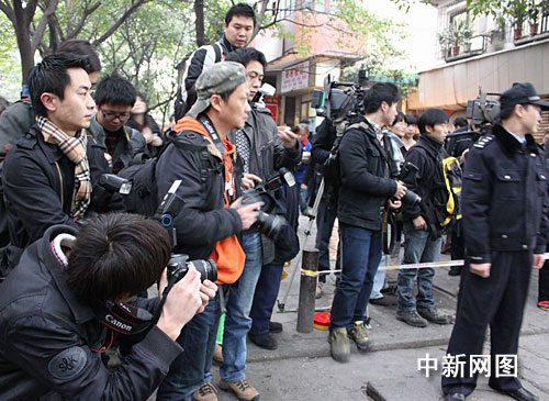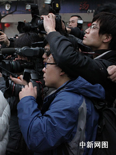 從早上7點開始,來自境內(nèi)外的各路記者便已經(jīng)在警戒頗嚴(yán)的重慶市第五中級人民法院門口守候,一些攝影愛好者也加入拍攝的隊伍,在很長一段時間里,在法庭外守候的記者多過圍觀的市民。記者看到,盡管法庭臨時增設(shè)加座,但也并非所有到場媒體能夠進去旁聽,不少沒有拿到旁聽證的媒體記者仍然早早的來到法院門口,希望能采訪到現(xiàn)場新聞和更快的得到一些消息。