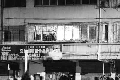 在事發(fā)現(xiàn)場,記者雖然站在馬路對面,但是記者可以清楚地看到事發(fā)現(xiàn)場2樓的一切,整棟大樓唯獨(dú)2樓燈火通明,有幾名荷槍實(shí)彈的特警手持沖鋒槍在陽臺(tái)內(nèi)隨時(shí)監(jiān)視現(xiàn)場的情況,他們死死地盯著一扇綠色的防盜門。而在張?zhí)K灘市場附近的樓上,已有4名警方狙擊手隱蔽在黑暗的角落監(jiān)視著綠色的防盜門,零點(diǎn)33分至36分,“砰!砰!砰!”幾聲巨響過后,從外面看一陣陣炫目的白光閃過,很多群眾都以為是警方在試圖炸開防盜門,伴隨著巨響而發(fā)出驚呼,大家都在為警察捏了一把汗,因?yàn)槌謽尫缸锵右扇撕苡锌赡芫筒卦诜孔永锩,凌?點(diǎn)40分左右,警方終于將防盜門打開并成功突入房內(nèi),卻發(fā)現(xiàn)犯罪分子已經(jīng)逃逸。