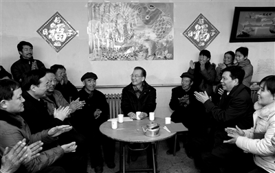 在蘇洪喜的家中,溫家寶向鄉(xiāng)親們介紹了政府的三農(nóng)工作,懇請(qǐng)鄉(xiāng)親們對(duì)政府工作提意見(jiàn)。