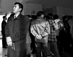 昨日上午8時(shí)許,部分記者在辦理旁聽證的窗口排隊(duì)等候,但得到的答復(fù)是:旁聽證已發(fā)完。
