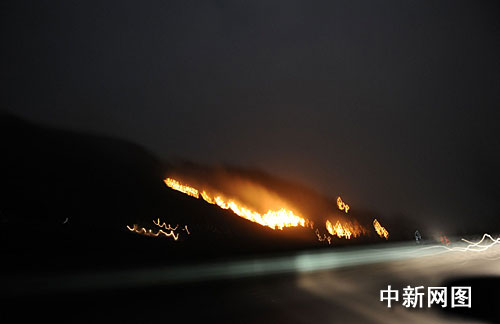 26日晚,中新網(wǎng)記者夜行貴州六盤水到安順市關嶺布依族苗族自治縣的路上,在不到三小時的時間里,連續(xù)看到5起正在燃燒的山火。其中,在青黃高速穿越的六枝特區(qū)安樂塘附近層層疊疊的大山中間,一條火龍在幾座山的半腰際蔓延肆虐,遠遠望去,猛烈的火勢映紅天際。而其他幾處山火亦是從山腰向上蔓延,有愈發(fā)猛烈之勢?吹缴交鸷,記者隨即撥打火警119,并從接線員處了解到,或因氣溫升高的原因,當晚接到的森林火警數(shù)量較之前幾日陡增,消防部門正會同林業(yè)及相關單位協(xié)調調集人力滅火,但形勢仍不容樂觀。