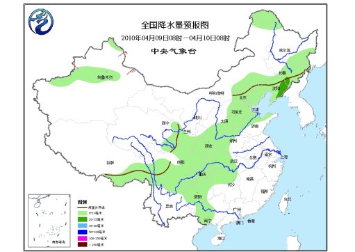 9日08時至10日08時,新疆阿勒泰地區(qū)及沿天山一帶、甘肅甘南地區(qū)、青海東部、西藏東部、川西高原中部、內(nèi)蒙古東部偏南地區(qū)及東北部、黑龍江西北部和東南部、河北西北部、遼寧西北部、吉林大部等地有小到中雪(雨)或雨夾雪;川西高原南部、甘肅東南部、陜西中南部、華北大部、遼寧大部、河南西部、湖北中西部、西南地區(qū)東部、湖南北部、廣西中西部等地有小到中雨或陣雨。新疆北部、內(nèi)蒙古東部、東北地區(qū)中北部等地有4~6級風,新疆山口地區(qū)風力有7~9級風;新疆南疆盆地、內(nèi)蒙古中西部等地的部分地區(qū)有揚沙或浮塵。渤海將有5~6級東北風;黃海大部海域、東海北部海域?qū)⒂?~5級偏南風;東海南部海域、臺灣海峽、臺灣以東洋面和以南海域、南海東北部海域?qū)⒂?~6級東北風。