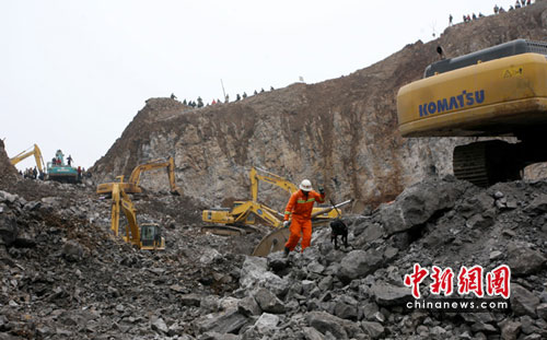 中新網(wǎng)峨眉樂都4月10日電(劉忠俊)10日14:55分,按照四川省公安消防總隊部署,成都市消防支隊政委馬昆帶著剛從沈陽培訓結束的兩只搜救犬以及訓導員等趕到峨眉山市樂都鎮(zhèn)順江采石場山體垮滑現(xiàn)場增援搜救工作。經(jīng)過2只搜救犬現(xiàn)場三次搜尋,在垮塌現(xiàn)場找到一臺失蹤汽車。