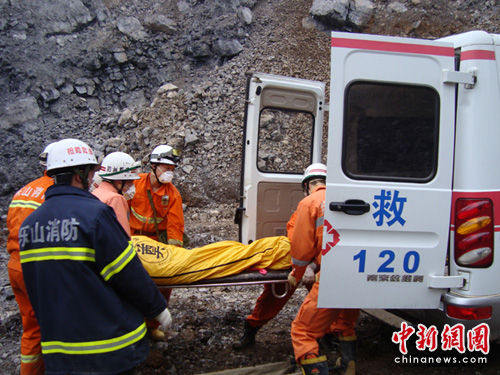 記者在順江采石場救援看到,救援現(xiàn)場濃霧彌漫,最低時(shí),能見度不足10米,但凌晨挖掘出的5輛汽車殘骸不得不讓10多臺(tái)挖掘機(jī)加緊工作。16:30分許,在1號(hào)通道左側(cè)前下方,挖掘機(jī)師傅徐斌正在挖土,突然,一個(gè)人從泥石堆里滾落出來!翱靵,有人!甭牭胶奥,消防、武警等救援人員迅速趕到現(xiàn)場,現(xiàn)場所有作業(yè)的機(jī)械全部停了下來,山谷中一片寂靜,隨后又一名遇難者被發(fā)現(xiàn),兩名遇難者均在搜救犬定位范圍內(nèi)。