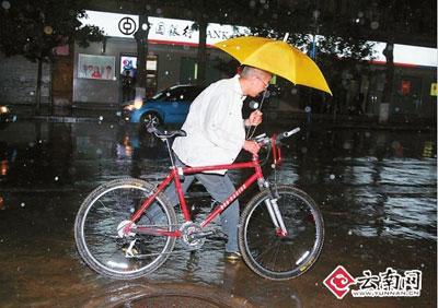黑壓壓的烏云籠罩了昆明兩個(gè)小時(shí)之后,昨晚8點(diǎn),一場(chǎng)從去年9月以來最大的降雨光臨昆明。當(dāng)豆大的雨點(diǎn)落在昆明家家戶戶的窗戶上時(shí),市民都興奮了。大家的感覺沒有錯(cuò),昨天晚上的那場(chǎng)降雨確實(shí)是干旱以來的最大一場(chǎng)。雖然降雨只持續(xù)了約一個(gè)小時(shí),但是電閃雷鳴間,這場(chǎng)雨已經(jīng)完全澆濕了昆明城。