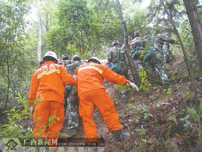 在現(xiàn)場,救援官兵分成3個救援小組,將搜索范圍擴大到30米,以免漏掉傷員。他們同時采用切割機、救援繩索、破拆工具、救援擔架等特種消防器材展開救援,與當?shù)卮迕褚黄饘麊T抬上路面。