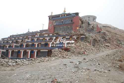 距結(jié)古鎮(zhèn)約20公里的禪古寺是該地區(qū)噶舉派最大的寺院,也是地震中損毀最嚴重的寺廟,3個主殿堂損毀兩座,經(jīng)堂全部倒塌,有260間僧房與兩個閉關(guān)等也被全部毀壞,更重要的是還有大量佛教用品和珍貴文物埋在廢墟下。