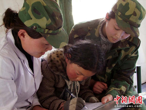 “4.14”玉樹(shù)地震讓家住結(jié)谷鎮(zhèn)賽馬場(chǎng)的索南巴毛的家傾刻間變成一片廢墟,所幸的是家里五口人除了媽媽措吉腰部被房屋的大梁砸傷,其他人都逃了出來(lái),沒(méi)有受傷。4月17日早晨8點(diǎn),連夜趕到災(zāi)區(qū)的解放軍第25醫(yī)院醫(yī)療隊(duì)巡診到索南巴毛家門(mén)前?蓯(ài)的小姑娘緊緊地拽住醫(yī)療隊(duì)沈中斌主任的衣角,用不太流利的漢語(yǔ)說(shuō):“叔叔,叔叔,快到我家看看,我媽媽被砸傷起不來(lái)了!笨粗f(shuō)話的小姑娘,沈主任摸摸她的頭,用一口四川話說(shuō):“快到前面帶路,我們過(guò)去看看!