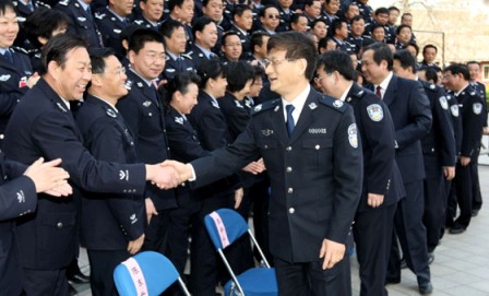 孟建柱要求,要毫不動搖地堅持從嚴(yán)治警、從優(yōu)待警方針,著力增強(qiáng)公安隊伍的凝聚力和戰(zhàn)斗力。要切實把從嚴(yán)治警與從優(yōu)待警有機(jī)結(jié)合起來,既要對民警嚴(yán)格教育、嚴(yán)格要求、嚴(yán)格管理、嚴(yán)格監(jiān)督,又要尊重民警、關(guān)心民警、愛護(hù)民警。要以制約和監(jiān)督權(quán)力為核心,以提高執(zhí)行力為抓手,全面加強(qiáng)反腐倡廉制度建設(shè),堅持用制度管權(quán)、按制度辦事、靠制度管人,不斷提高反腐倡廉工作的水平;要穩(wěn)妥推進(jìn)公安機(jī)關(guān)執(zhí)法勤務(wù)機(jī)構(gòu)警員職務(wù)套改工作,積極拓寬民警的職業(yè)發(fā)展空間;要科學(xué)合理安排民警的工作、學(xué)習(xí)和生活,高度重視民警身心健康,千方百計解決民警后顧之憂,讓廣大民警能夠真切地感受到成就感、安全感和幸福感。