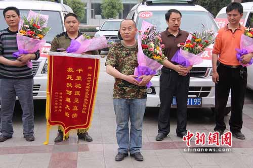 中新網(wǎng)成都4月30日電(蘭鋒)30日下午6時許,四川宜賓高速北站口,家鄉(xiāng)人民用鮮花和最熱烈的掌聲,歡迎圓滿完成青海玉樹抗震救災(zāi)任務(wù)的宜賓醫(yī)療救護隊凱旋。
