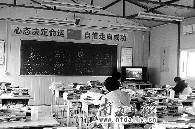 在記者采訪北川中學(xué)的這個(gè)周末,幾乎每一個(gè)教室里都有學(xué)生在自習(xí),少數(shù)班級(jí)有老師輔導(dǎo)或?qū)W生干部在值日,但更多的則是學(xué)生在自覺地學(xué)習(xí)。