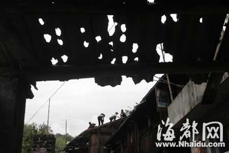 記者遇到的每一個延平區(qū) 翁坑村村民,都會伸出拳頭,形容那時下的冰雹比拳頭還大,“就像打過來一陣炮彈!弊蛱熘形,記者趕到南平市延平區(qū)峽陽鎮(zhèn),這個中國歷史文化名鎮(zhèn)失去了往昔的寧靜,在18日傍晚遭受特大冰雹襲擊后,該鎮(zhèn)小梅、杜溪、陳坍、葛大、翁坑、大埂、浪石等村1200多戶6000多村民嚴(yán)重受災(zāi),房屋瓦片被大面積擊穿,其中翁坑村、葛大村災(zāi)情最為嚴(yán)重。