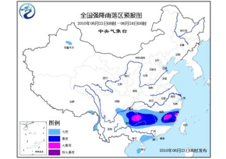 中新網(wǎng)6月23日電 中央氣象臺(tái)今日06時(shí)繼續(xù)發(fā)布暴雨藍(lán)色預(yù)警:預(yù)計(jì)6月23日08時(shí)到6月24日08時(shí),四川盆地南部、重慶南部、貴州中東部、湖南大部、江西中南部、浙江南部、福建大部、廣西北部和東南部等地有大到暴雨,局地有大暴雨;上述部分地區(qū)并伴有短時(shí)雷雨大風(fēng)等強(qiáng)對(duì)流天氣。另外,新疆天山北麓、西藏東南部、云南西部、廣東西南部和西北部、海南西部等地的局部地區(qū)有大雨。