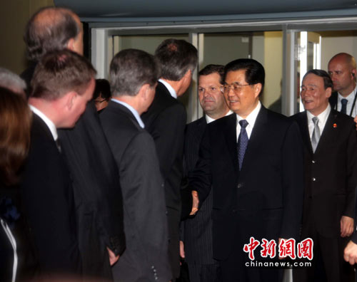 中新網(wǎng)多倫多6月26日電 (記者 張朔 賴海隆)當(dāng)?shù)貢r間6月26日上午,多倫多飄起細(xì)雨。正在加拿大訪問的中國國家主席胡錦濤乘車來到位于多倫多市以北的龐巴迪飛機制造廠參觀。