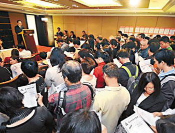 25日舉行的一場(chǎng)以銀主盤為主的拍賣場(chǎng),即吸引接近150人到場(chǎng)準(zhǔn)備“買便宜樓”,不但逼爆整個(gè)會(huì)場(chǎng),遲到的準(zhǔn)買家更不惜在會(huì)場(chǎng)門口人群中突圍舉手爭(zhēng)逐,部分單位就出現(xiàn)數(shù)名準(zhǔn)買家,經(jīng)十多口價(jià)才奪得心頭好的現(xiàn)象。