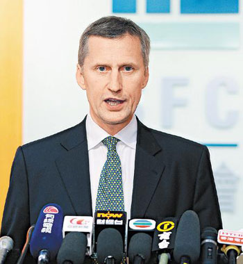 證監(jiān)會行政總裁韋奕禮22日傍晚臨時會見傳媒,公布該會與新鴻基投資服務(wù)達(dá)成協(xié)議的消息。他指出,這次處理方法所達(dá)致的成果,符合投資者的最佳利益,對這宗個案所達(dá)致的結(jié)果感到相當(dāng)滿意。