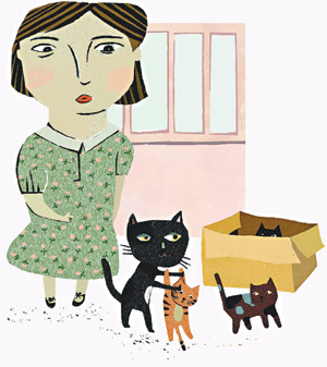 就這樣,我們相處了半個(gè)月,彼此沒有任何互動(dòng),但戒心已大為放松。情人節(jié)前夕,我在臥室聽到幼貓的叫聲,急忙探頭,發(fā)現(xiàn)它叼著小貓,朝黑忽忽的陽臺(tái)急奔,我很傷感,知道分離的時(shí)刻到了。那一夜,我輾轉(zhuǎn)難眠。