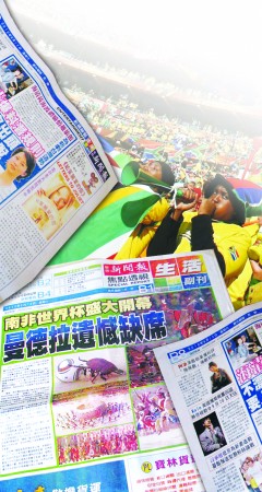 由于讀者群體中,港臺人士占了一定比重,三家報(bào)紙都是用繁體字寫作。娛樂新聞?wù)紦?jù)的篇幅很大,并且配有大幅照片,內(nèi)容也多數(shù)是港臺明星的逸聞趣事。對于南非本土的明星,反而漠不關(guān)心。