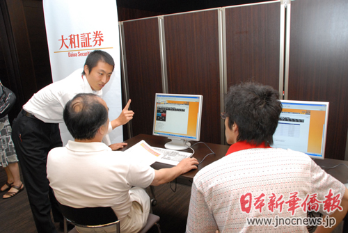 記者在會場上還看見,大和證券為了舉辦此次說明會,準(zhǔn)備工作可謂面面俱到。考慮到中午時間,天氣炎熱,參加說明會的在日華人可能來不及吃午飯,大和證券就特意為大家準(zhǔn)備了豐盛的盒飯和就餐時間;為了讓參會者對外匯實際操作有一個實際感覺,大和證券在會場一側(cè)設(shè)置了數(shù)臺電腦和最新款式的iPad平板電腦供大家模擬操作,遇到疑難問題,大和證券的員工們給予熱心仔細地解說。