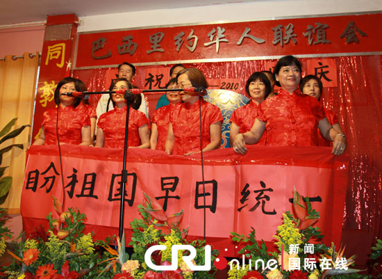 當(dāng)?shù)貢r間19日下午,巴西里約熱內(nèi)盧第一大華人社團(tuán)——里約華人聯(lián)誼會舉行聯(lián)歡會,慶祝新中國61歲生日。中國駐里約熱內(nèi)盧副總領(lǐng)事李春梅,華人聯(lián)誼會會長季友松,以及當(dāng)?shù)刂匾獌S領(lǐng)均出席活動。