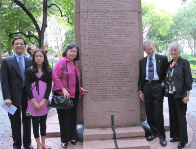 中新網(wǎng)9月29日電 據(jù)美國《世界日報》報道,2009年美國11位諾貝爾獎得主的名字28日新添在紐約曼哈頓上西城羅斯福公園(Theodore Roosevelt Park)內(nèi)的諾貝爾紀(jì)念碑(Nobel Monument)上,其中包括華裔物理獎得主高錕(Charles Kuen Kao)的英文名字C.K.Kao。高錕的三位家人出席了新聞發(fā)布會,代高錕分享這一殊榮。
