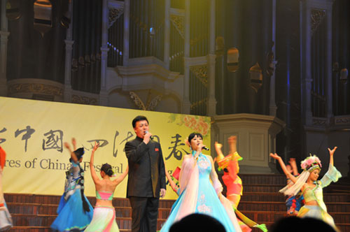 當?shù)貢r間2月20日,21日由國務(wù)院僑辦、中國海外交流協(xié)會組派的“文化中國•四海同春”赴大洋洲藝術(shù)團在著名的悉尼市政廳劇院連續(xù)舉行了兩場慰僑演出。首場演出是2月17日,中國農(nóng)歷新年的大年初四,在澳大利亞墨爾本達拉斯布魯克斯音樂廳。雷鳴般的掌聲回蕩在劇院內(nèi),經(jīng)久不息。動聽的歌聲、悠揚的樂曲,曼妙的舞姿令觀眾如醉如癡。三場演出都獲得了巨大成功,引起轟動。當?shù)刂髁魃鐣娂姲l(fā)來賀信。