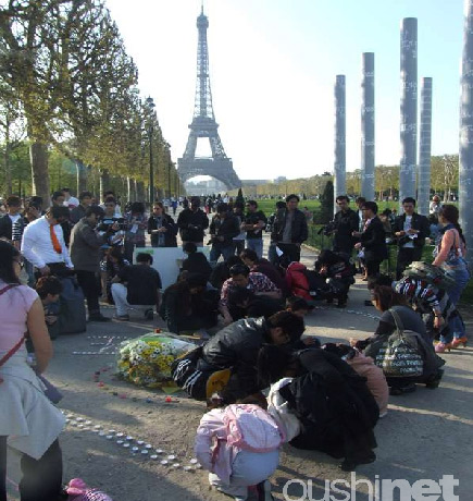 數(shù)百名在法留學(xué)生和華人于18日在巴黎艾爾菲鐵塔前的和平墻點(diǎn)起蠟燭,為青海玉樹地震的遇難者祈福。他們將數(shù)百支蠟燭擺成巨大的心形和“玉樹”字樣,然后逐一將蠟燭點(diǎn)燃,與此同時(shí),祈福板上也留下他們各式的祝福語,表達(dá)自己對災(zāi)區(qū)同胞們血脈相連的感情。望著燃燒的蠟燭,留學(xué)生和華人高呼“玉樹加油”,衷心的祈求青海玉樹地震中的生者平安,死者安息;顒(dòng)吸引不少路過的法國人和游人也停下腳步,為玉樹地震的死難者哀悼。