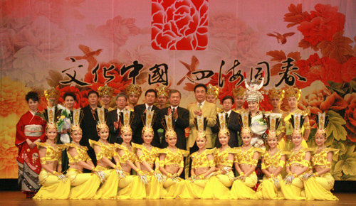中新網(wǎng)3月1日大阪電(記者關(guān)妍)3月1日晚,擁有九十余年歷史的大阪中央公會(huì)堂流光溢彩,氣氛熱烈。中國(guó)國(guó)務(wù)院僑辦2010年春節(jié)“文化中國(guó)•四海同春”藝術(shù)團(tuán)當(dāng)晚在這里舉行隆重演出,為觀眾帶來(lái)一場(chǎng)原汁原味的中國(guó)特色歌舞盛會(huì)。