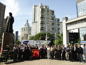 中新網(wǎng)9月27日電 據(jù)美國《僑報(bào)》報(bào)道,來自紐約大學(xué)Poly學(xué)院中國學(xué)生學(xué)者聯(lián)誼會(huì)、中美青年聯(lián)合會(huì)的一群80后青年學(xué)子,25日在紐約華埠且林士果廣場和僑胞們一起舉行了慶祝祖國60周年華誕和紀(jì)念中美兩國建交30周年中、美兩國國旗傳遞和升旗儀式。