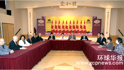 中新網(wǎng)10月14日電 據(jù)加拿大《環(huán)球華報(bào)》報(bào)道,加拿大總理哈珀(Stephen Harper)當(dāng)?shù)貢r(shí)間10月13日在聯(lián)邦國際貿(mào)易部長(zhǎng)戴國衛(wèi)(Stockwell Day)、華裔國會(huì)議員、多元文化國會(huì)秘書黃陳小萍的陪同下造訪總部位于溫哥華中僑互助會(huì),并與十多位少數(shù)族裔社區(qū)領(lǐng)袖舉行圓桌會(huì)議,聽取社區(qū)意見。