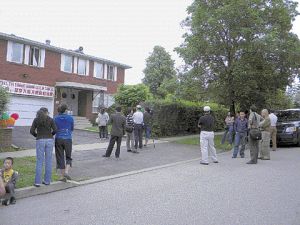 唐煒臻的燒烤會13日下午2時許,如期在其家中的后院舉行,唐在家門前對媒體做了一番有關(guān)自己的案件是“冤假錯案”的表白。他家的車房門上方,依舊高懸寫有中英文口號的橫額“唐煒臻一案,加拿大最大的冤假錯案”。