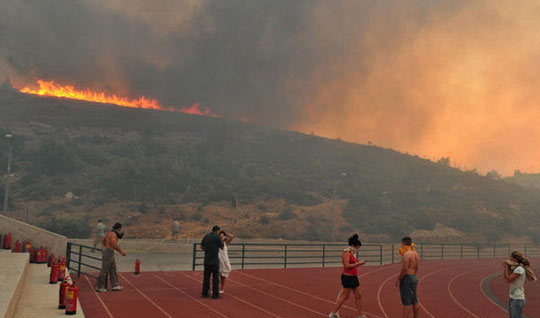 中新網(wǎng)8月24日電 近日希臘首都雅典東北部發(fā)生山火,火勢嚴(yán)重,并正在向雅典方向逼近,預(yù)計1.2萬公頃土地被焚毀。希臘政府已宣布進(jìn)入緊急狀態(tài),疏散2萬當(dāng)?shù)厝罕,動員數(shù)百名消防人員進(jìn)行撲救。
