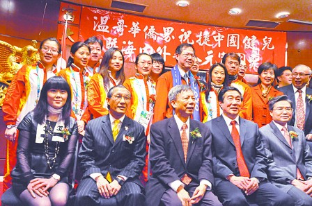 500多名僑界代表當(dāng)日共同守候功臣們的到來,奪金的花樣滑冰雙人滑選手申雪和趙宏博剛到場,便受到英雄和明星式的待遇,從進(jìn)場到坐下便好像“手握不完、相影不完、名簽不完!彪S后,王冰玉、周妍、岳清爽和柳蔭這冰壺4姐妹入場,又引發(fā)新一輪高潮,場面極為熱鬧,閃光燈亮個不停。