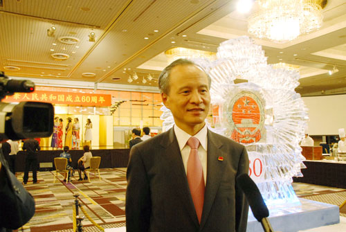 中新網(wǎng)9月30日電 據(jù)日本新華僑報(bào)網(wǎng)報(bào)道,29日,中國(guó)駐日本大使崔天凱在東京舉行盛大招待會(huì),熱烈慶祝中華人民共和國(guó)成立60周年。日本內(nèi)閣官房長(zhǎng)官平野博文、財(cái)務(wù)大臣藤井裕久等11名內(nèi)閣大臣,眾議院議長(zhǎng)橫路孝弘、參議院議長(zhǎng)江田五月、前首相羽田孜、森喜朗、福田康夫,日本經(jīng)濟(jì)、科技、教育、文化、新聞等各界及對(duì)華民間友好團(tuán)體負(fù)責(zé)人,在日華僑華人、留學(xué)生、中資機(jī)構(gòu)代表共約2000余人應(yīng)邀出席了招待會(huì)。